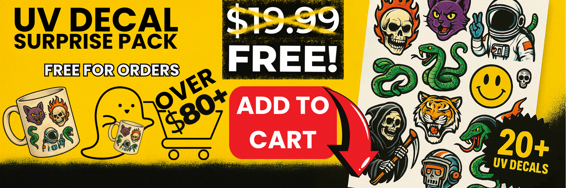 Discover the thrill of surprise with our DTF Ghost UV Decal Surprise Pack! Inside each pack, you'll find 20+ unique UV DTF decals, featuring bold, edgy, and fun designs perfect for customizing mugs, tumblers, phone cases, laptops, and more.