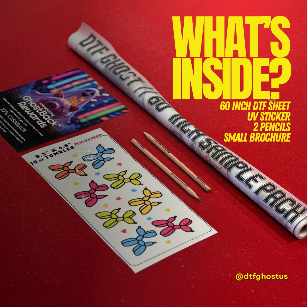 Diversify Your Product Line: Unleash your creativity and expand your product offerings. From apparel to accessories, the DTF Transfers & UV DTF Sticker Sample Pack equips you to cater to a diverse market with unique and customizable prints.