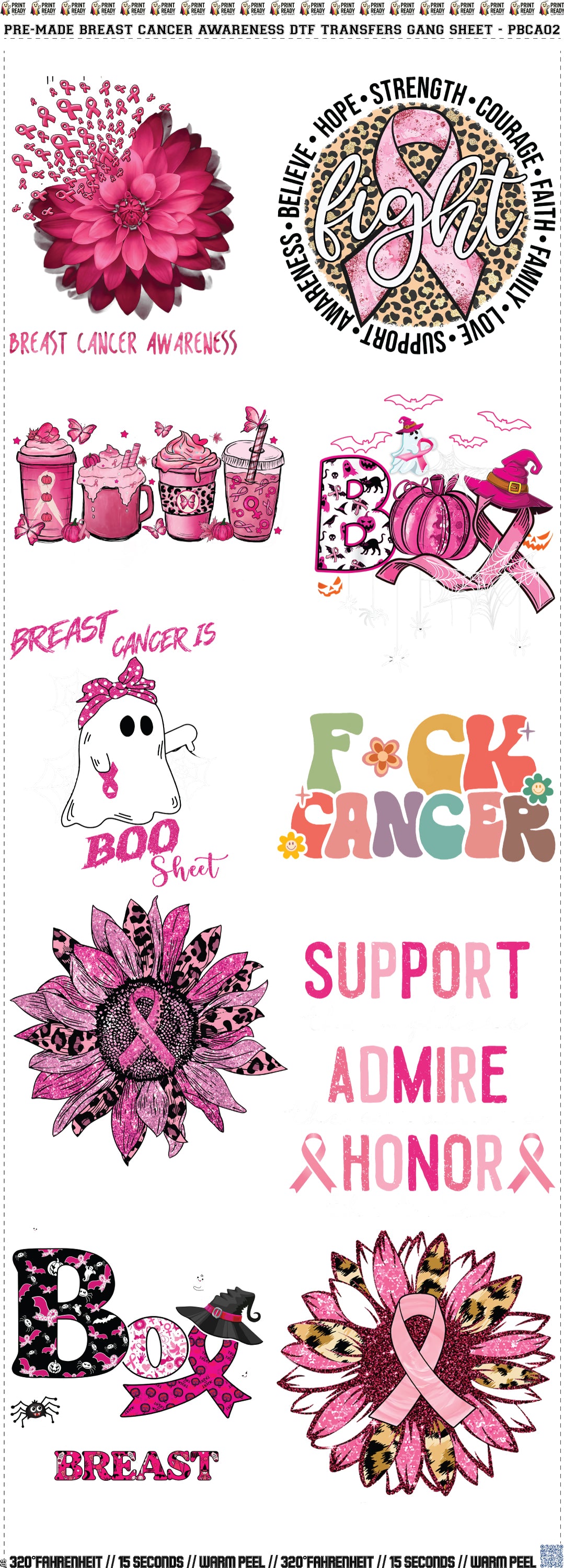 60" Breast Cancer Awareness DTF Transfers Gang Sheet - PBCA02