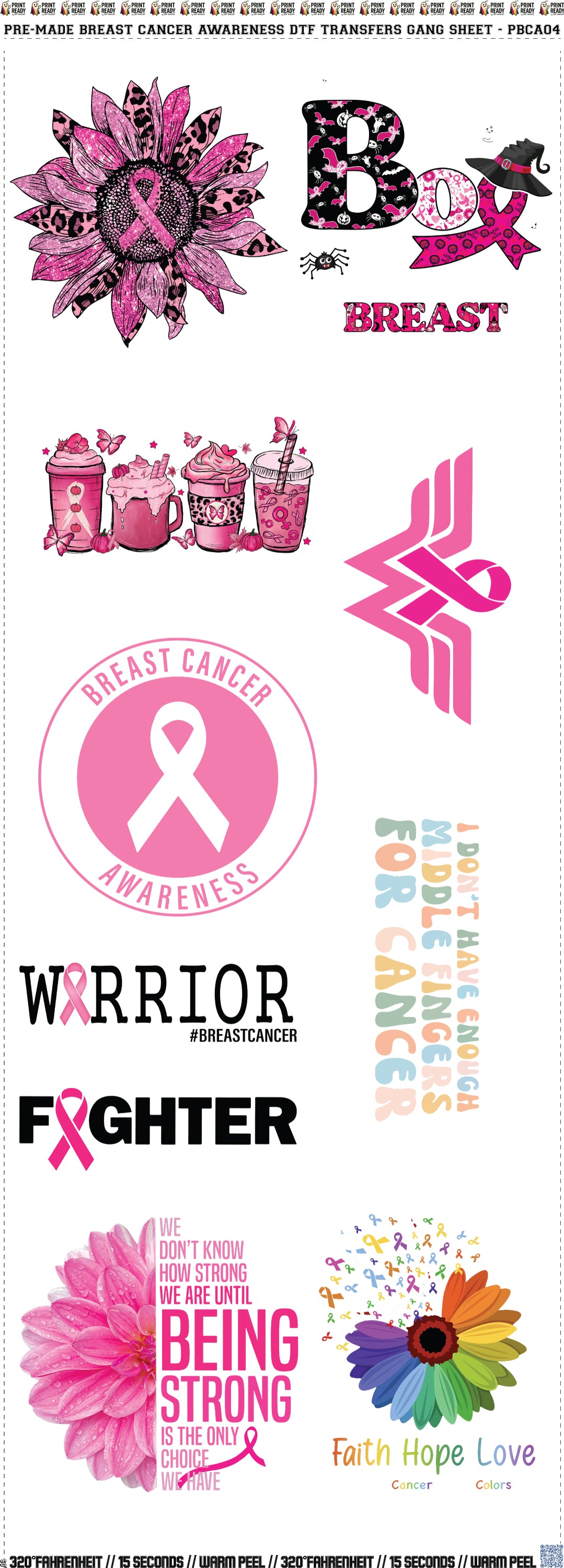 Pre-Made Breast Cancer Awareness DTF Transfers Gang Sheet - PBCA04