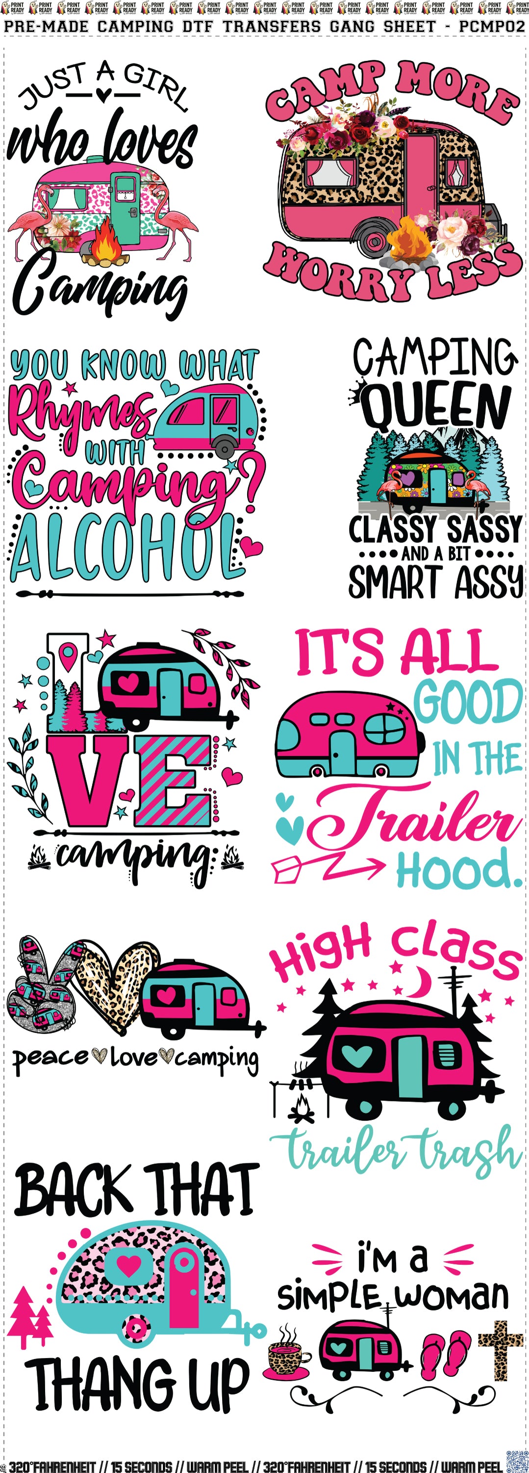 Pre-Made Camping DTF Transfers Gang Sheet- PCMP02
