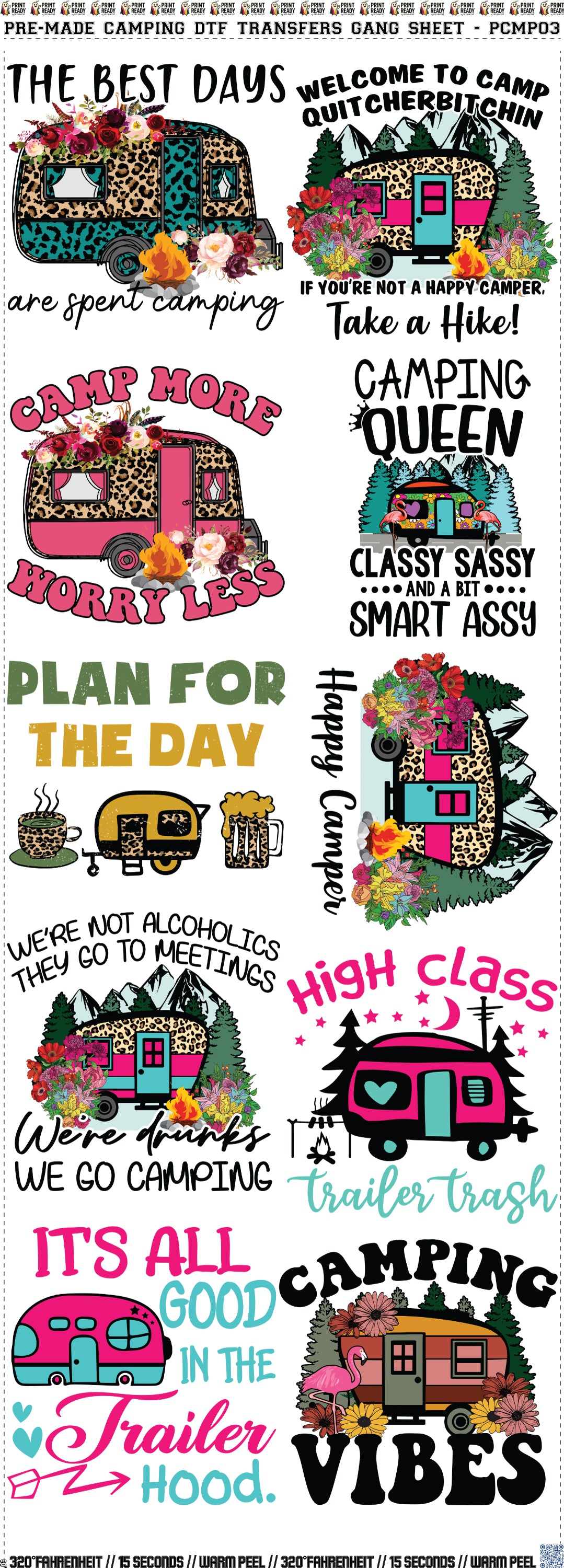 Pre-Made Camping DTF Transfers Gang Sheet- PCMP03