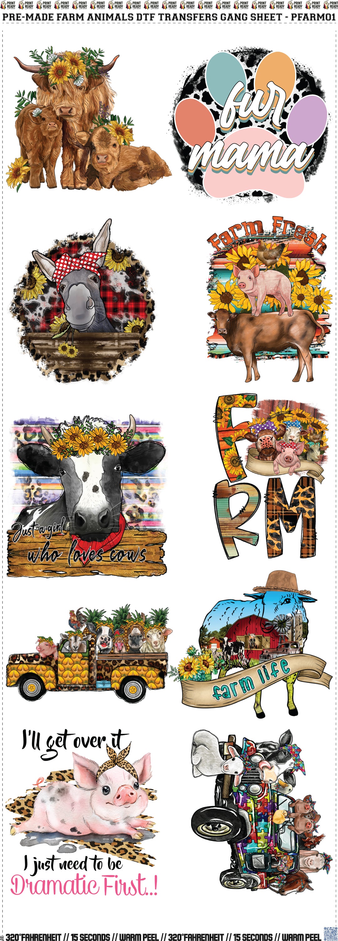 Pre-Made Farm Animals DTF Transfers Gang Sheet - PFARM01