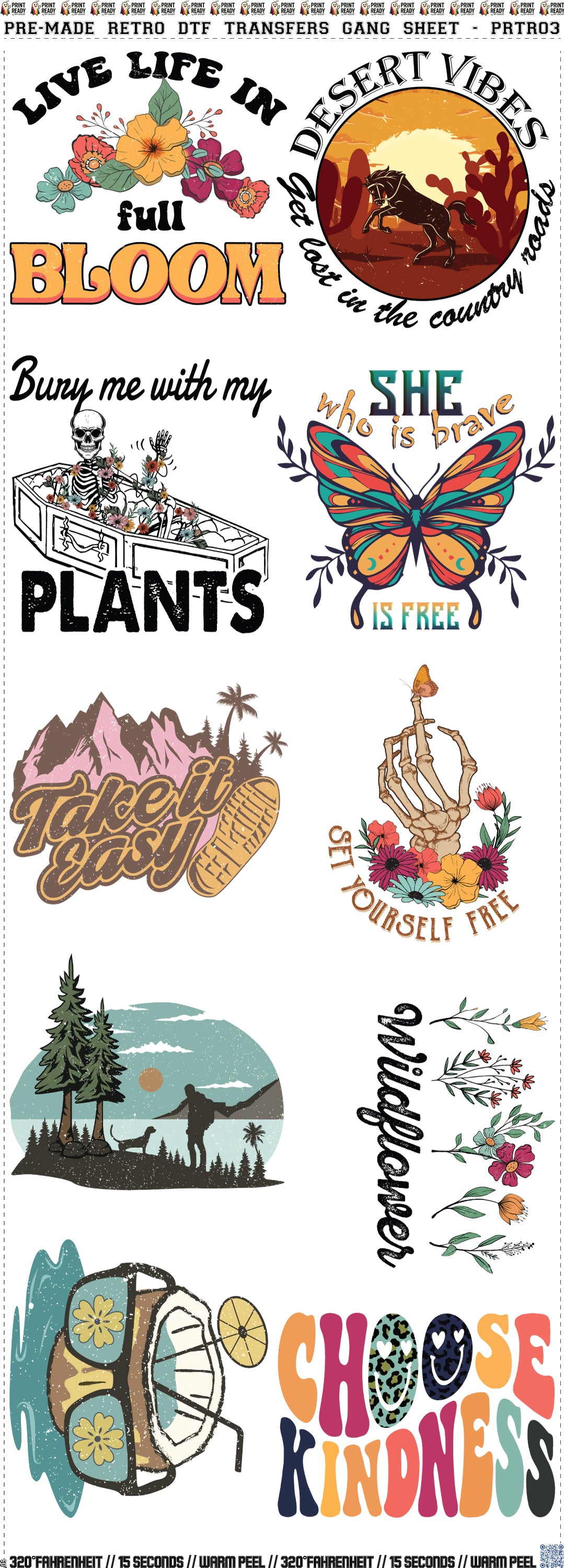 Pre-Made Retro DTF Transfers Gang Sheet - PRTR03
