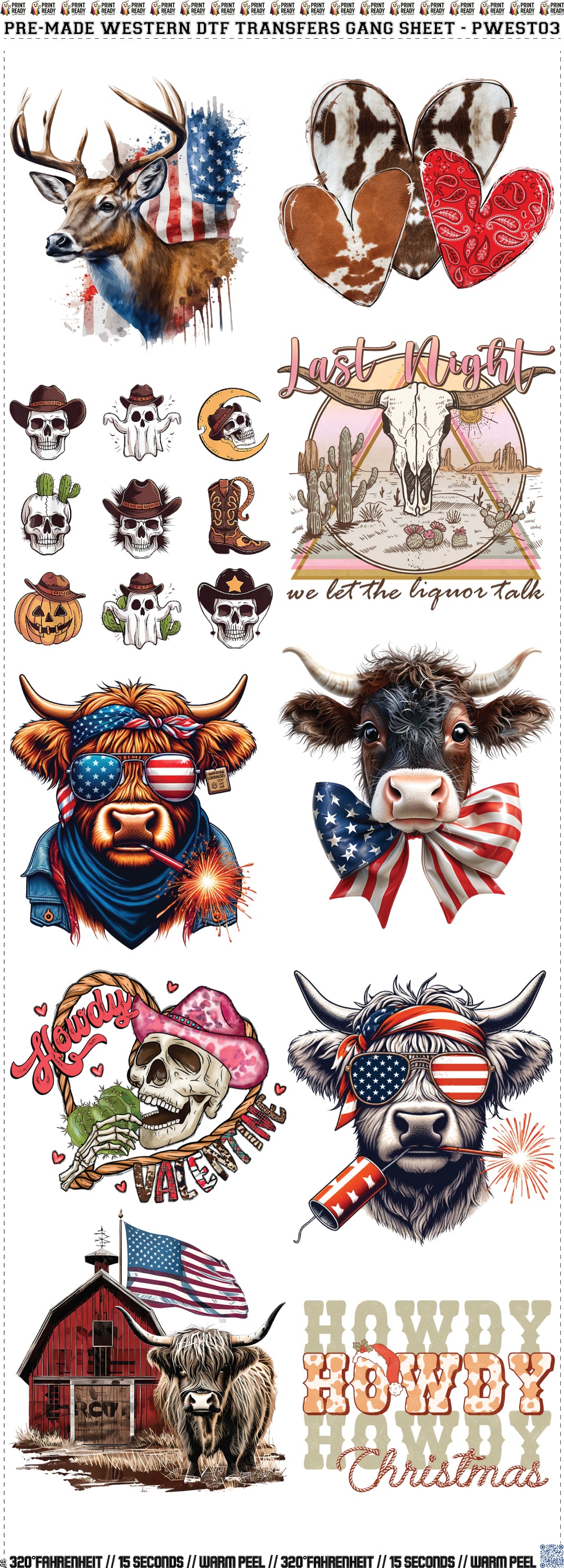 Pre-Made Western DTF Transfers Gang Sheet - PWEST03